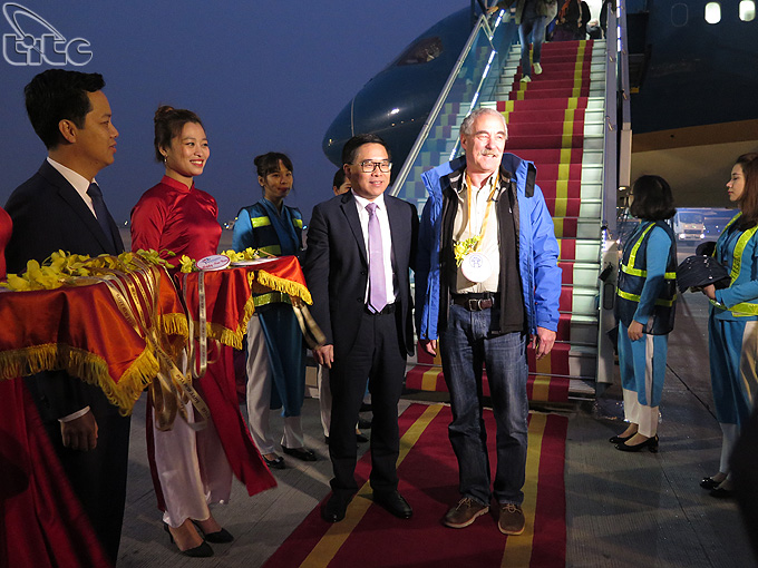 Đúng 6h sáng ngày 1/1, chiếc máy bay mang số hiệu VN 36 đã đưa vị khách quốc tế đầu tiên đến Hà Nội là ông Thomas Bauche, quốc tịch Đức. Ông cùng vợ và đoàn du lịch của mình sẽ bắt đầu hành trình xuyên Việt trong 3 tuần, khám phá nhiều địa danh du lịch nổi tiếng của Việt Nam như Hà Nội, Hội An, Huế, các tỉnh miền Tây. Đây là lần thứ 2 ông cùng vợ quay lại Việt Nam, bởi theo ông Việt Nam là điểm đến rất hấp dẫn, ông rất ấn tượng với cảnh quan đẹp, con người thân thiện cùng ẩm thực của Việt Nam.