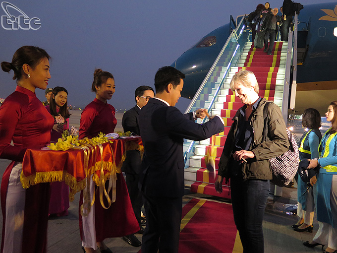 Chuyến máy bay mang số hiệu VN 36 đưa vị khách quốc tế đầu tiên đến Hà Nội