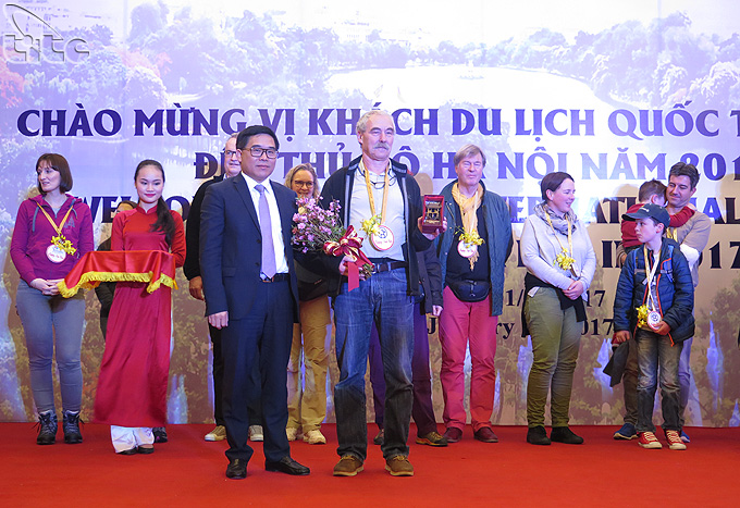 Ông Đỗ Đình Hồng đón vị khách quốc tế đầu tiên đến Hà Nội trong năm 2017