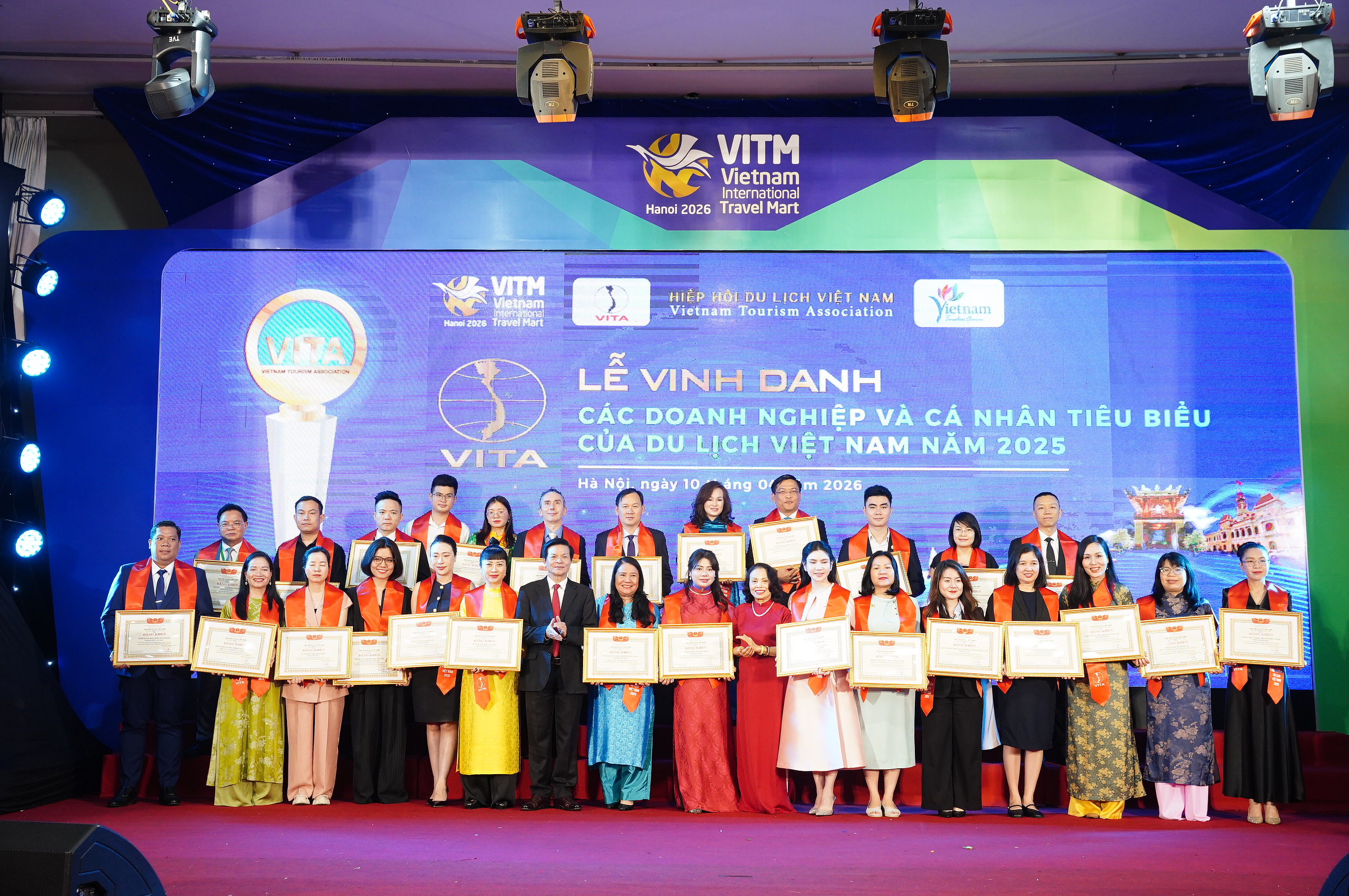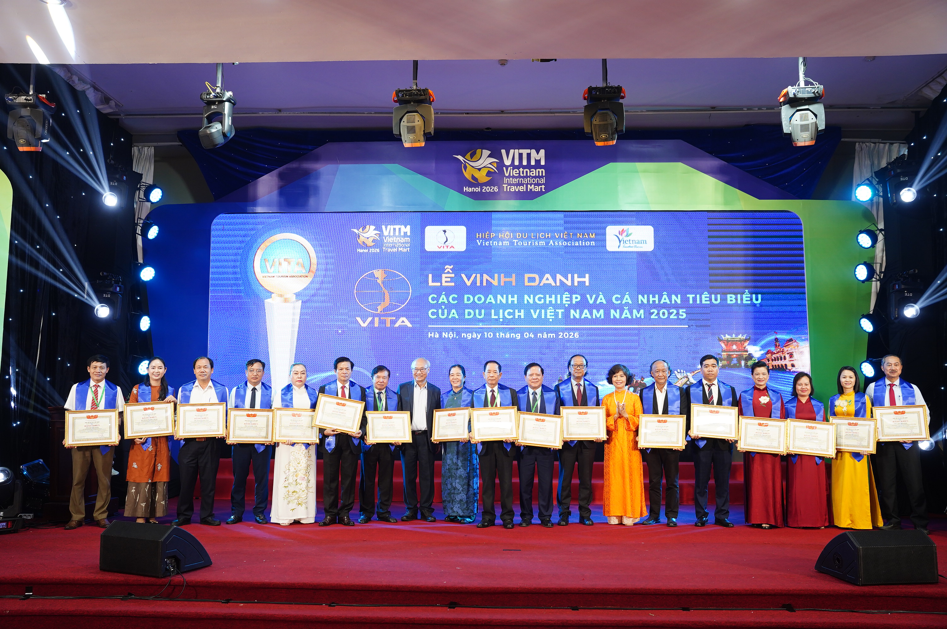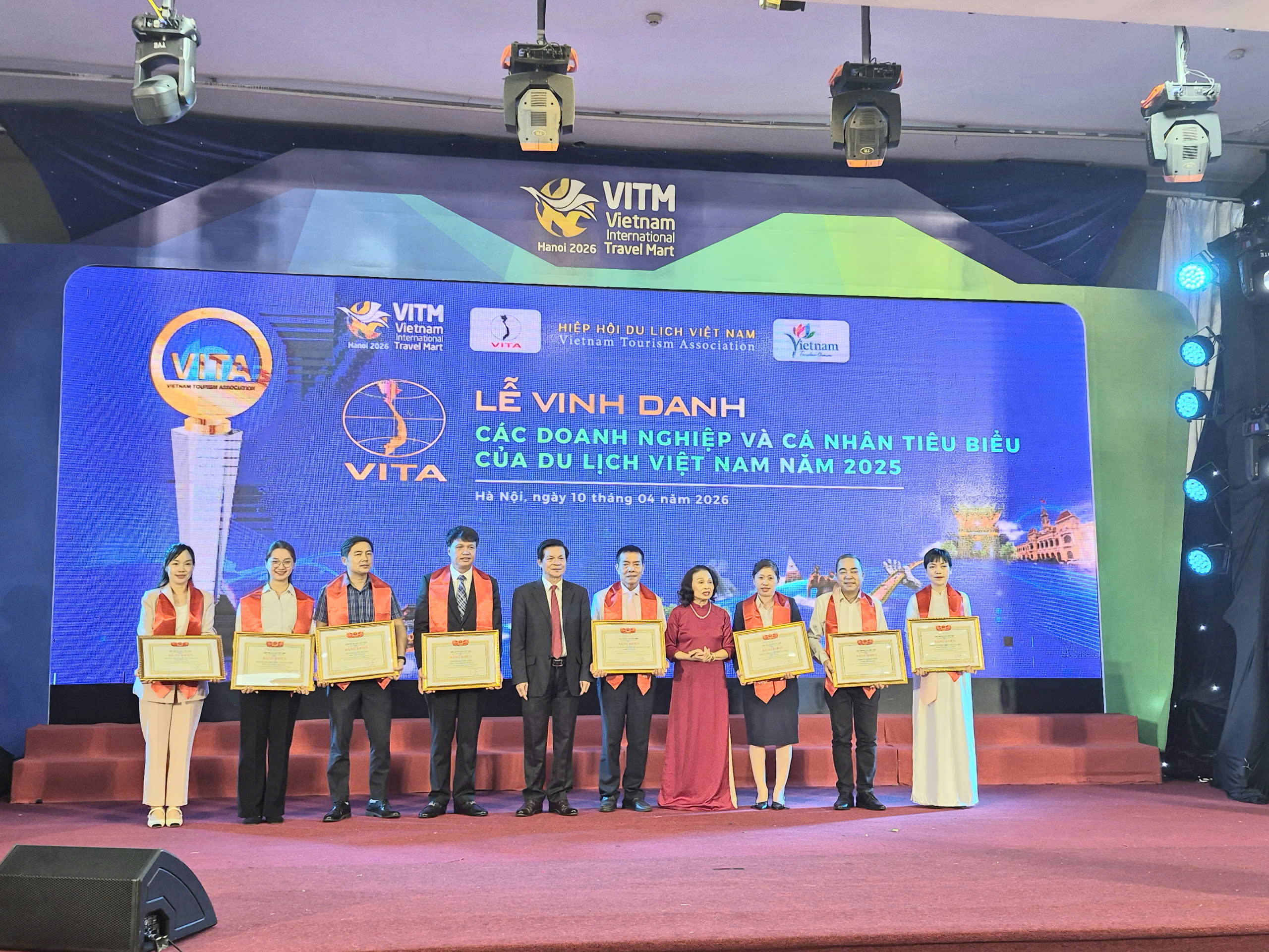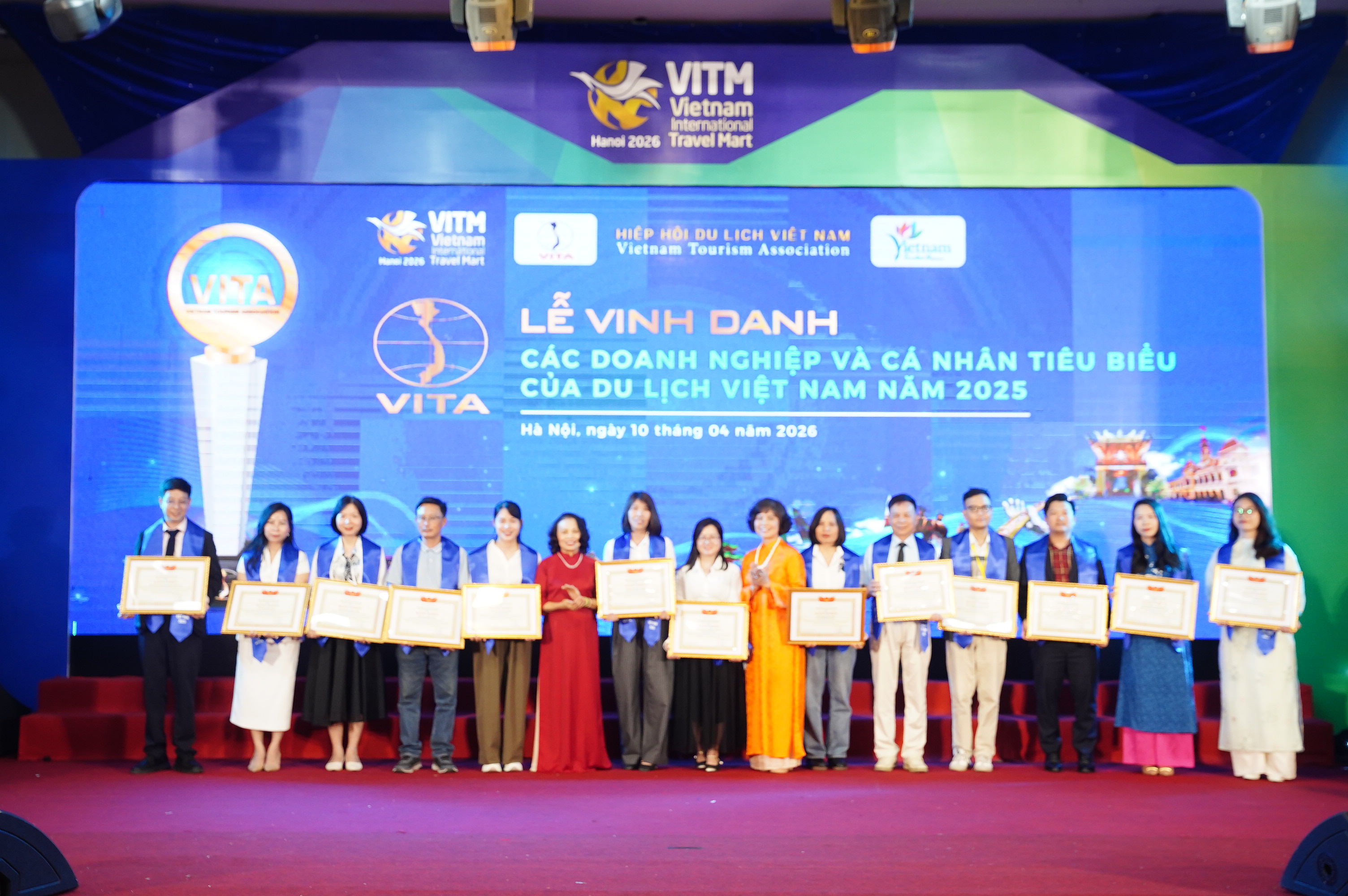 Chiều 10/4 tại Hà Nội, trong khuôn khổ Hội chợ Du lịch Quốc tế Việt Nam – VITM 2026, Hiệp hội Du lịch Việt Nam đã tổ chức Lễ vinh danh “Các doanh nghiệp và cá nhân tiêu biểu, có thành tích xuất sắc trong lĩnh vực du lịch năm 2025”.