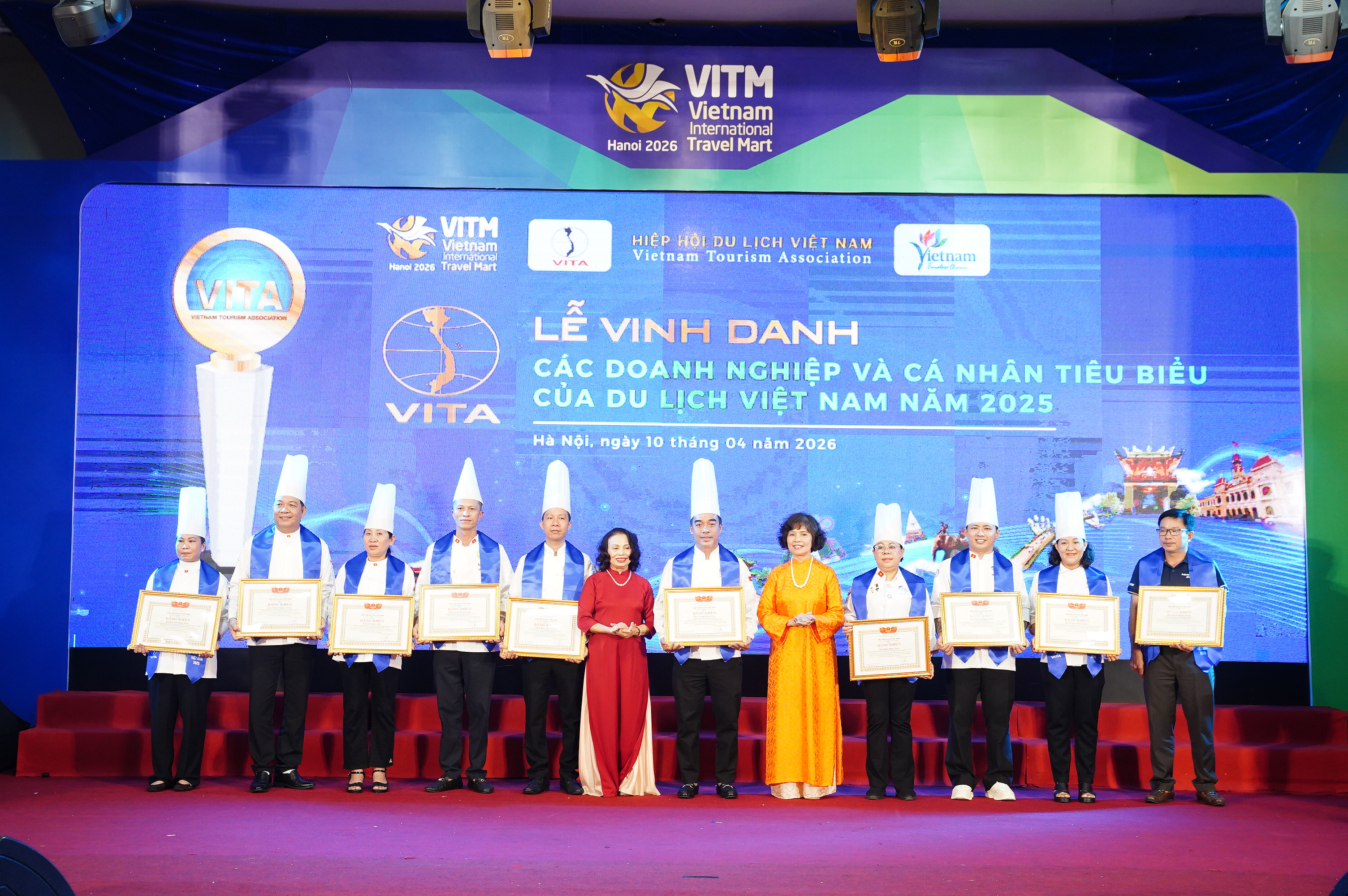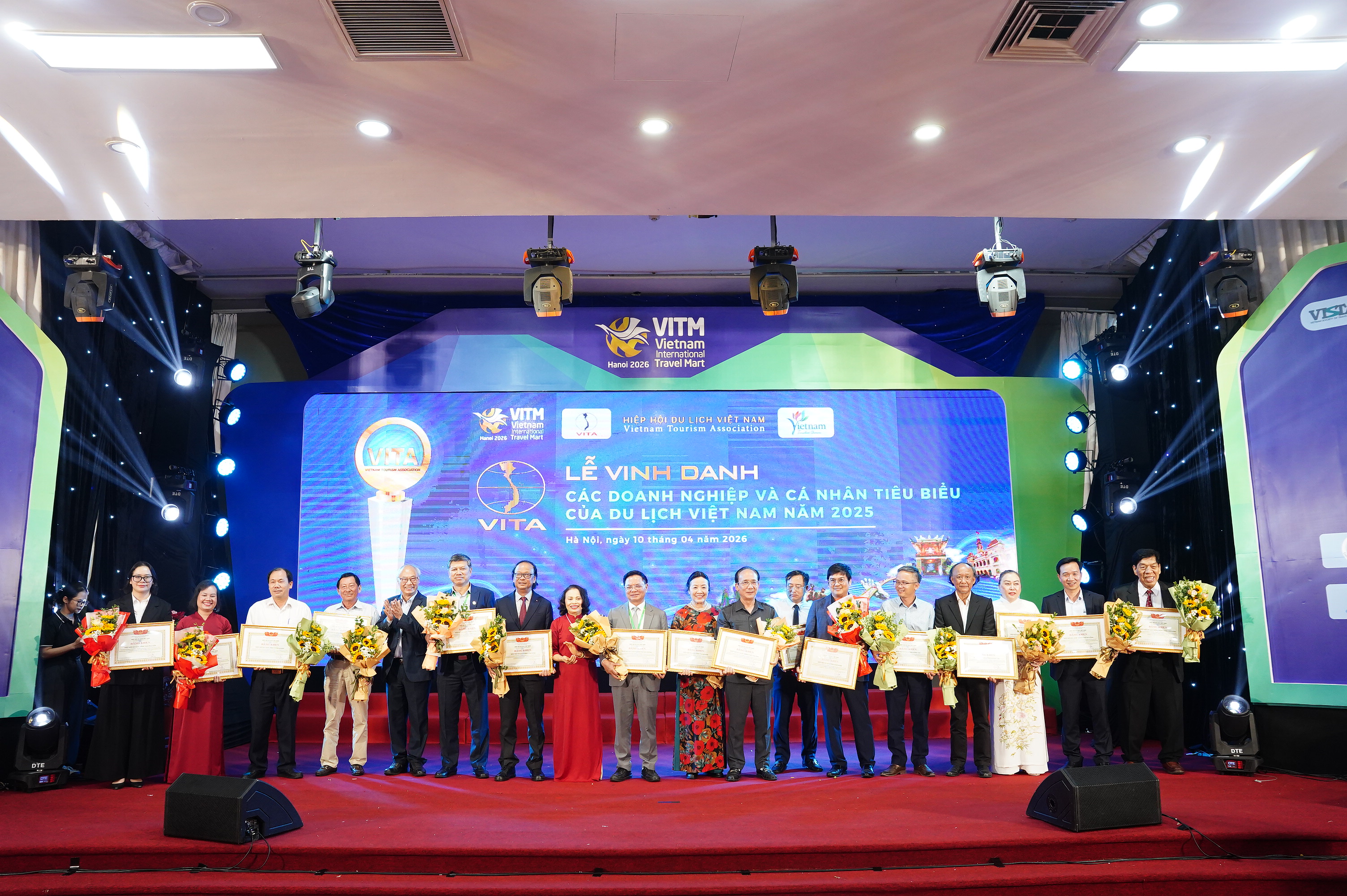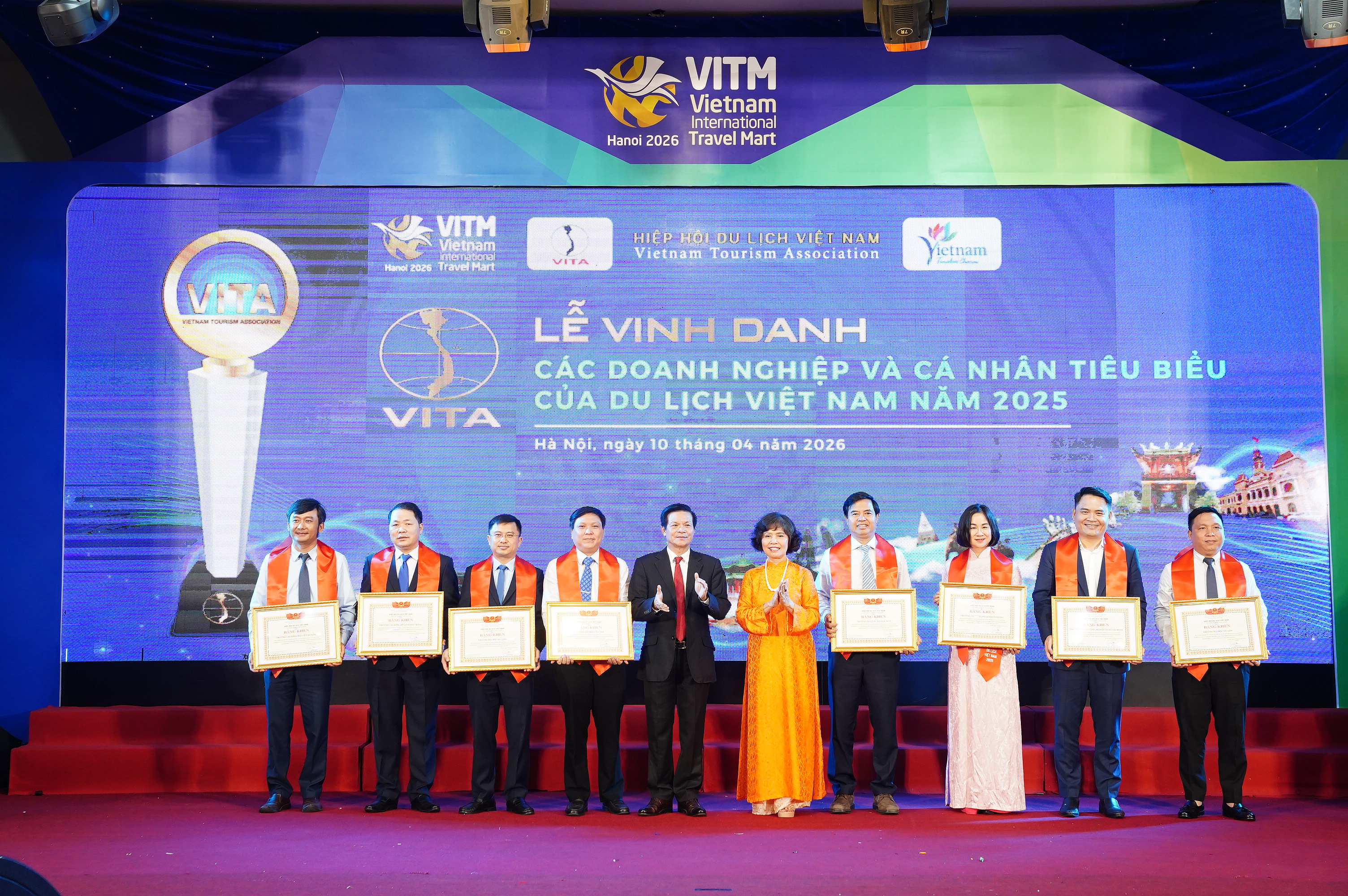Chiều 10/4 tại Hà Nội, trong khuôn khổ Hội chợ Du lịch Quốc tế Việt Nam – VITM 2026, Hiệp hội Du lịch Việt Nam đã tổ chức Lễ vinh danh “Các doanh nghiệp và cá nhân tiêu biểu, có thành tích xuất sắc trong lĩnh vực du lịch năm 2025”.