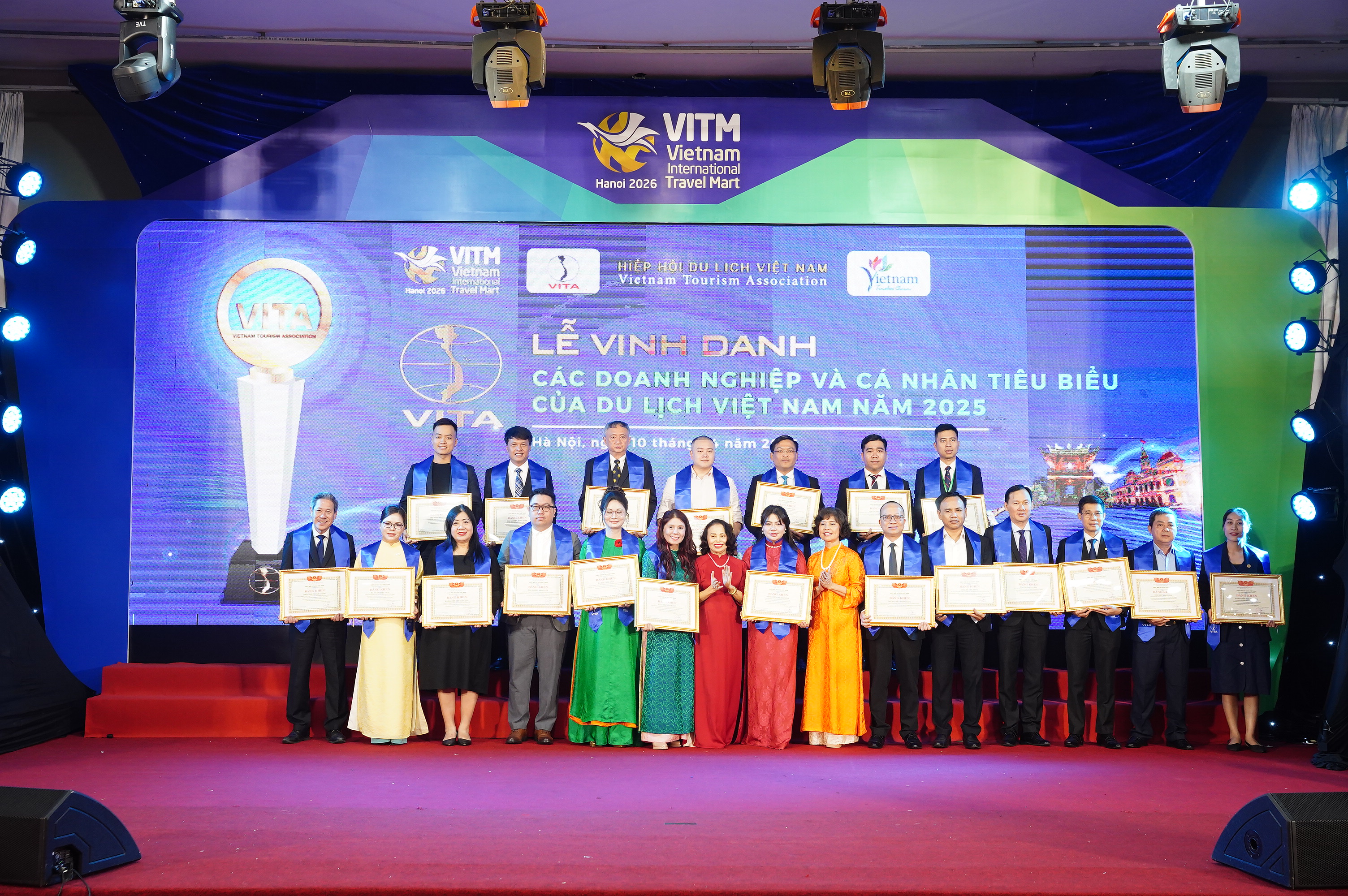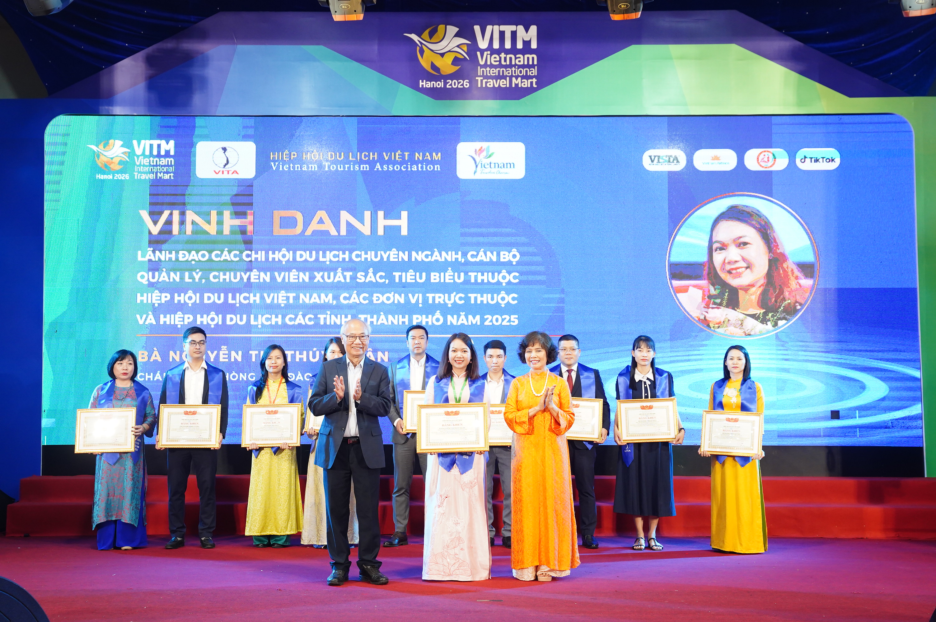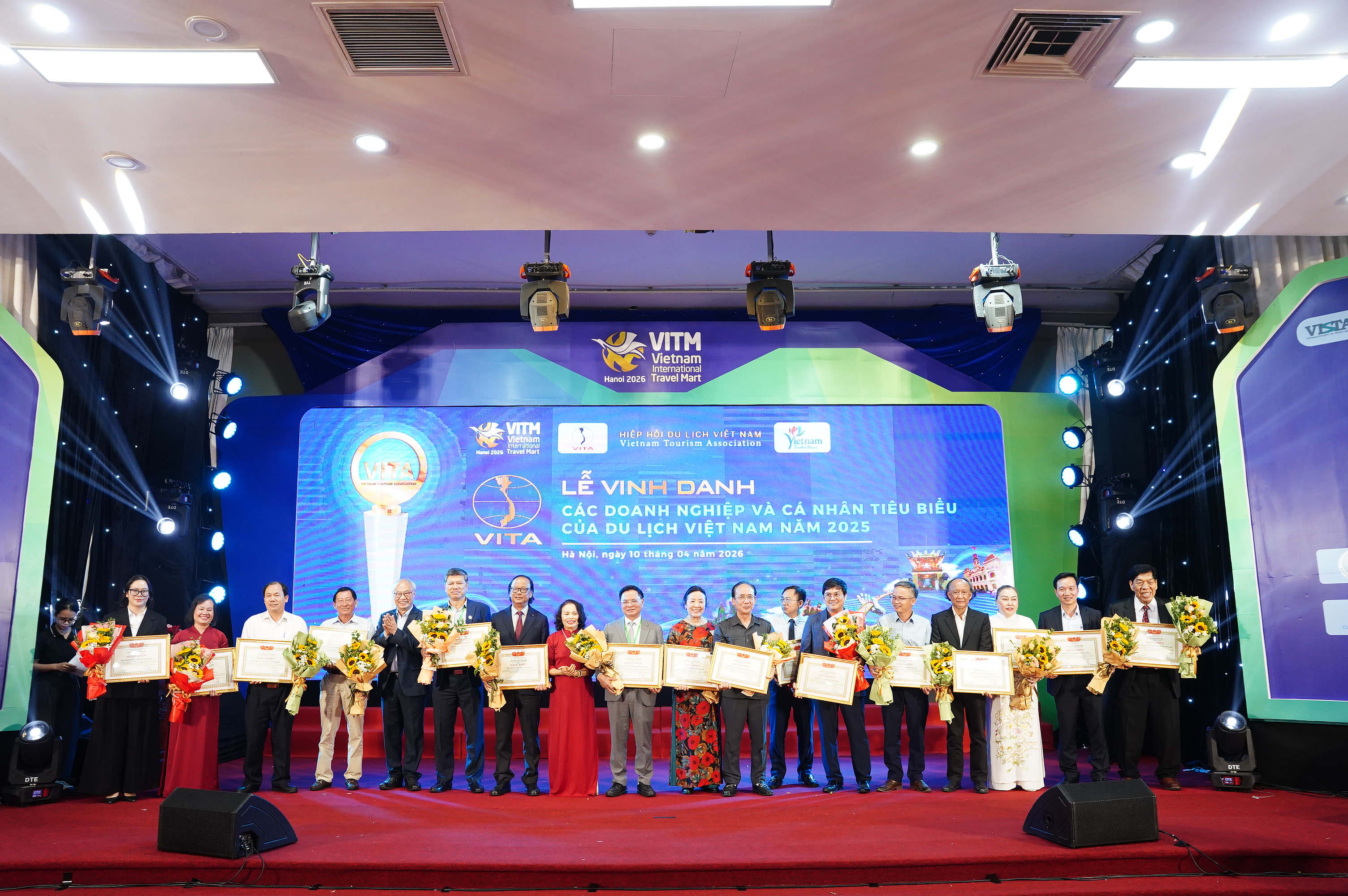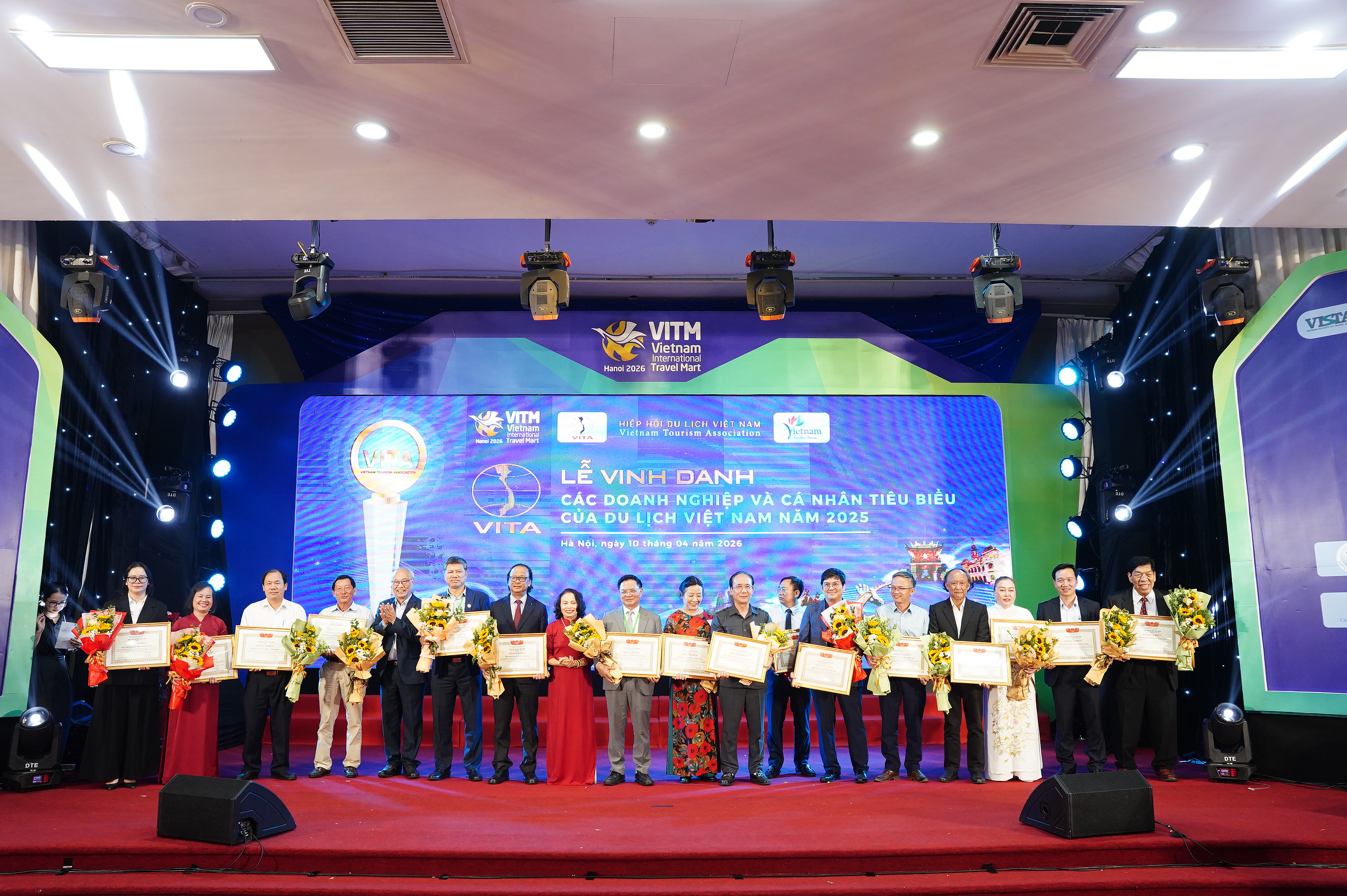 Chiều 10/4 tại Hà Nội, trong khuôn khổ Hội chợ Du lịch Quốc tế Việt Nam – VITM 2026, Hiệp hội Du lịch Việt Nam đã tổ chức Lễ vinh danh “Các doanh nghiệp và cá nhân tiêu biểu, có thành tích xuất sắc trong lĩnh vực du lịch năm 2025”.