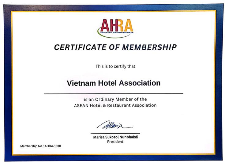 |  | Vào ngày 22.8.2024, tại thủ đô Bangkok Thái Lan, Liên chi hội Khách sạn Việt Nam đã vinh dự nhận chứng nhận trở thành Hội viên chính thức của Hiệp hội Khách sạn và Nhà hàng ... |