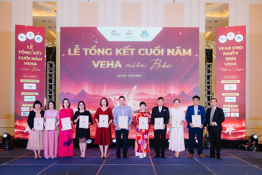 Chủ tịch Câu lạc bộ Quản lý Buồng Việt Nam đã trân trọng trao tặng Chứng nhận “Hội viên Xuất sắc 2025” cho 11 cá nhân tiêu biểu có mặt tại buổi lễ – đại diện cho 22 hội viên VEHA được vinh danh toàn quốc trong năm 2025.